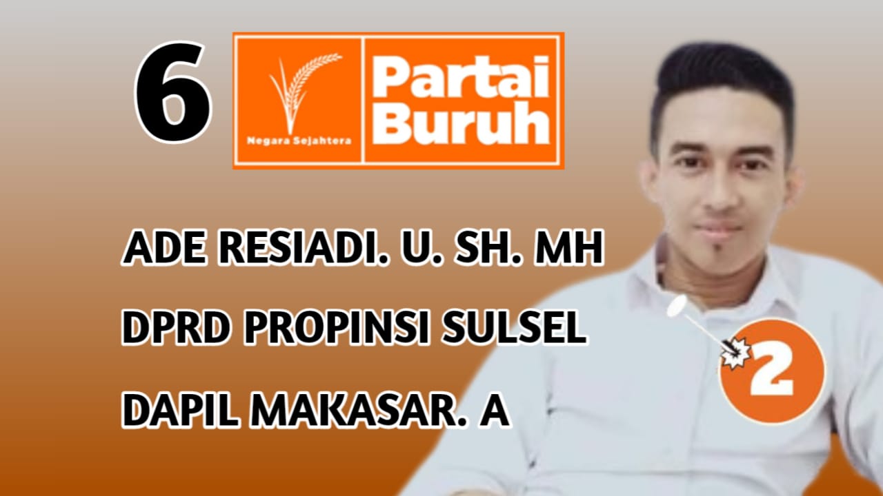 Makassar, RadarEkspres – Salah satu Calon Legislatif Partai Buruh DPRD Provinsi Sulawesi Selatan Dapil Makassar A, Ade Resiadi, S.H.,M.H maju dan ikut di pileg 2024 khusus Dapil Wilayah di 11 Kecamatan, Mariso, Mamajang, Makassar, Ujung Pandang, Wajo, Bontoala, Tallo, Ujung Tanah, Tamalate, Rappocini, Kepulauan Sangkarang