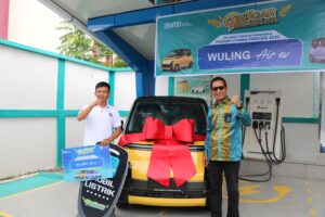General Manager PT PLN (Persero) Unit Induk Distribusi Sulawesi Selatan, Sulawesi Tenggara dan Sulawesi Barat (UID Sulselrabar), Moch. Andy Adchaminoerdin menyerahkan langsung hadiah satu unit mobil listrik kepada Erick, pelanggan PLN di Kabupaten Kolaka.