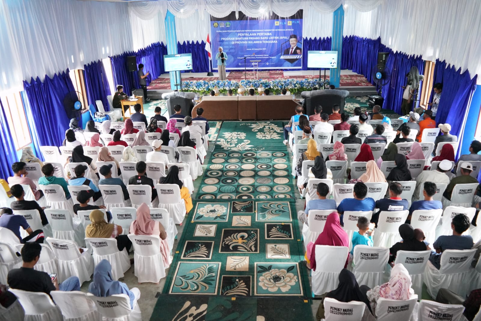 Suasana sosialisasi Bantuan Pasang Baru Listrik Gratis di momen penyalaan simbolis di Desa Seuwwa, Kabupaten Kolaka Utara, Provinsi Sulawesi Tenggara, Jumat (6/9).