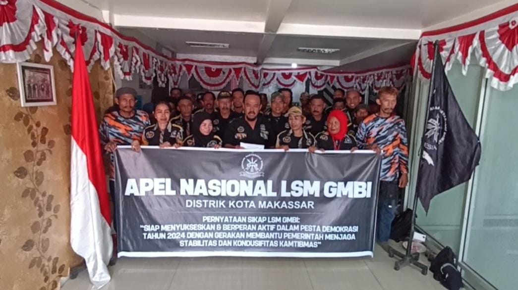 Pernyataan sikap LSM GMBI Distrik Kota Makassar tersebut dalam mendukung pelaksanaan Pemilu 2024 dengan turut menjaga kondusifitas dalam kegiatan Apel Nasional yang dilaksanakan di Sekretariat Distrik Kota Makassar, Jumat, 15 Desember 2023.