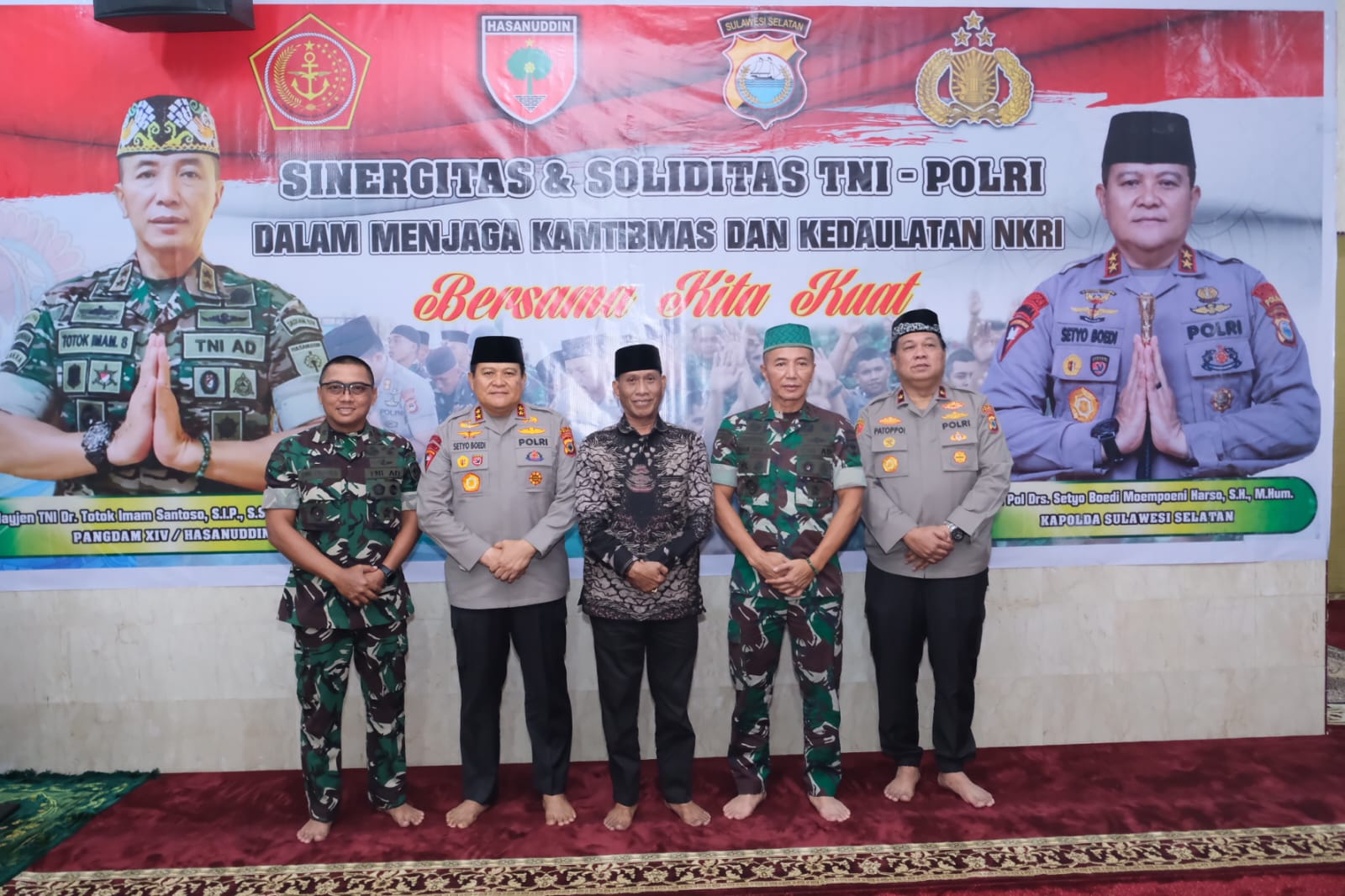 RadarEkspres – Kapolda Sulsel Irjen. Pol. Drs. Setyo Boedi Moempoeni Harso, S.H., M.Hum dan Wakapolda Sulsel Wakapolda Sulsel, Brigjen. Pol. Chuzaini Patoppoi, S.St.M.K., S.H melaksanakan Sholat Dhuhur berjamaah bersama Pangdam XIV Hasanuddin Mayjen TNI Dr. H. Totok Imam Santoso, S.I.P., S.Sos., M.Tr.(Han) beserta Irdam, para PJU, Perwira dan Bintara serta Tamtama Kodam XIV Hasanuddin di Mesjid Syuhada 45 Mapolda Sulsel, Selasa (02/05/2023).