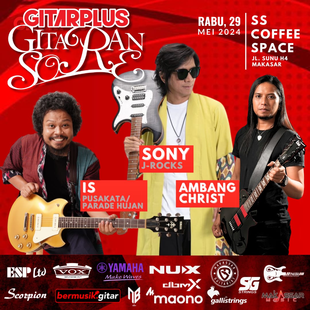 Kabarnya, Sony J-Rocks, Iis PUSAKATA, Ambang Christ Power Slaves, bersama 5 gitaris lokal dari komunitas berbeda bakal menunjukkan kemampuan terbaik mereka. Hal itu diungkapkan oleh pemilik majalah Gitar Plus, Caesilia Intan Pratiwi.